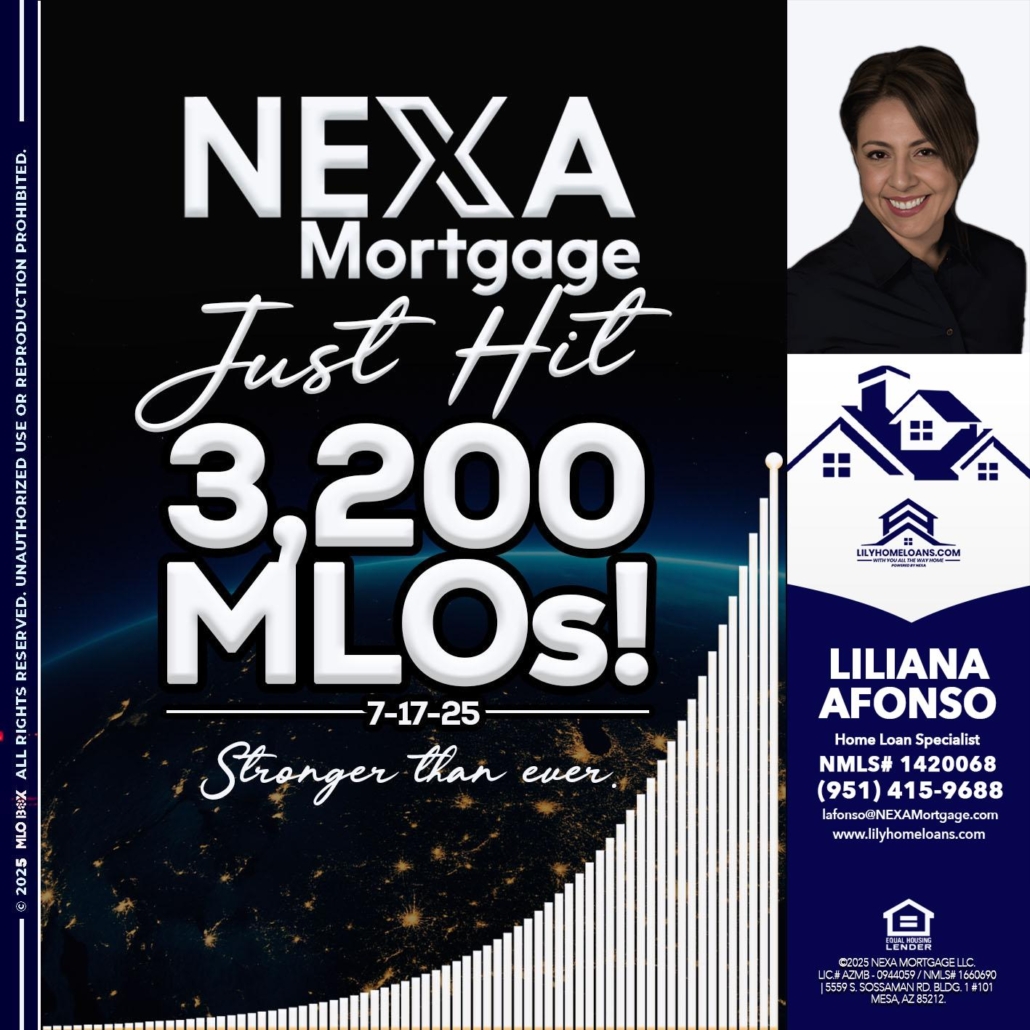 Hi, my name is Liliana Afonso. I’m a Loan Officer with NEXA Mortgage LLC., offering personalized mortgage solutions, fast customized quotes, great rates and service with integrity.