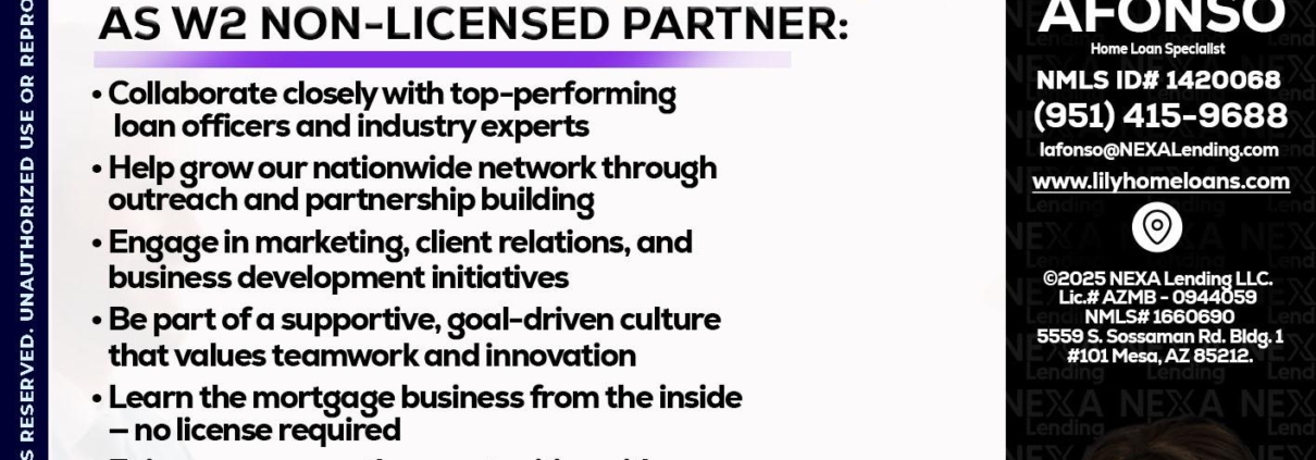 Hi, my name is Liliana Afonso. I’m a Loan Officer with NEXA Mortgage LLC., offering personalized mortgage solutions, fast customized quotes, great rates and service with integrity.