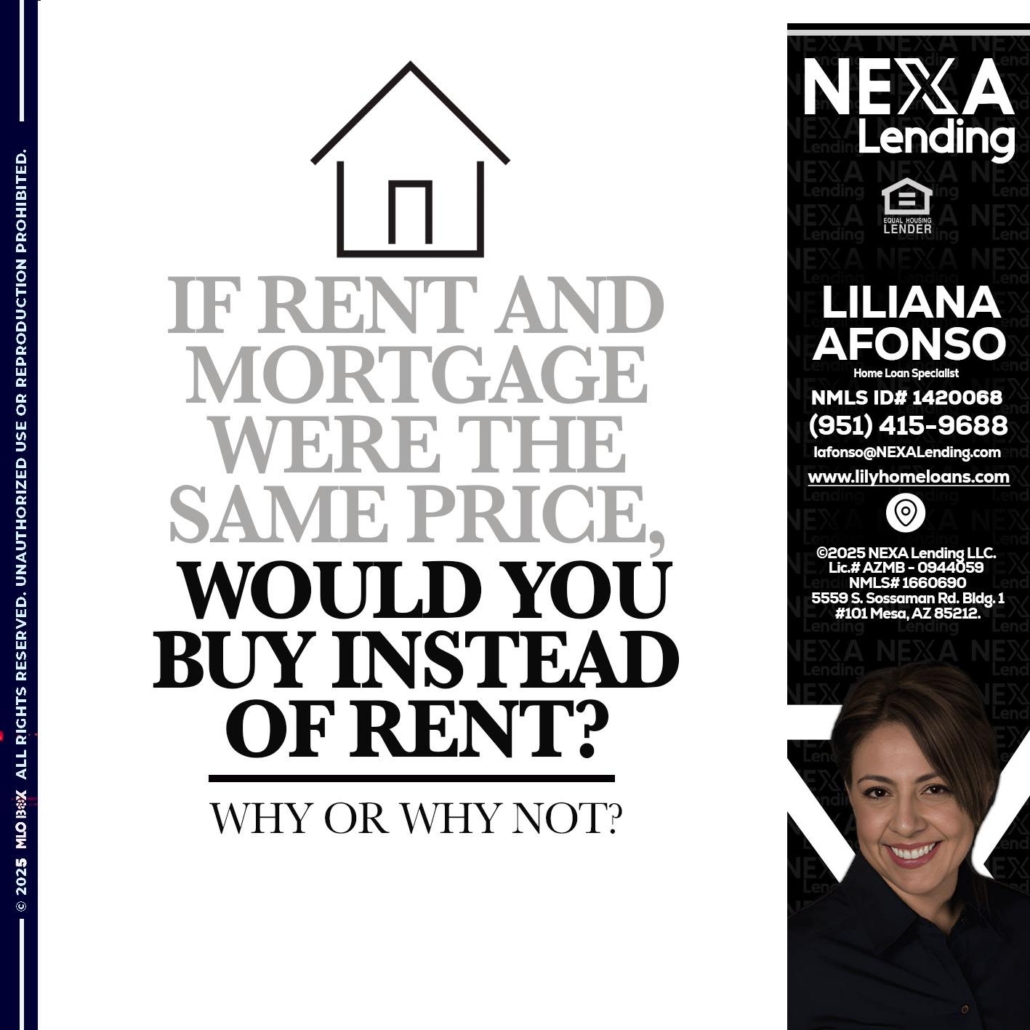 Hi, my name is Liliana Afonso. I’m a Loan Officer with NEXA Mortgage LLC., offering personalized mortgage solutions, fast customized quotes, great rates and service with integrity.