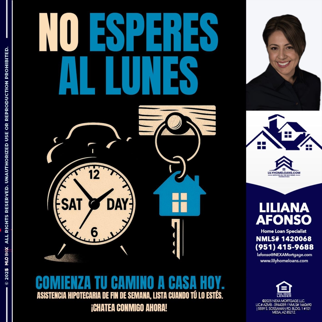 Hi, my name is Liliana Afonso. I’m a Loan Officer with NEXA Mortgage LLC., offering personalized mortgage solutions, fast customized quotes, great rates and service with integrity.