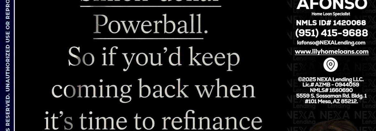Hi, my name is Liliana Afonso. I’m a Loan Officer with NEXA Lending LLC., offering personalized mortgage solutions, fast customized quotes, great rates and service with integrity.