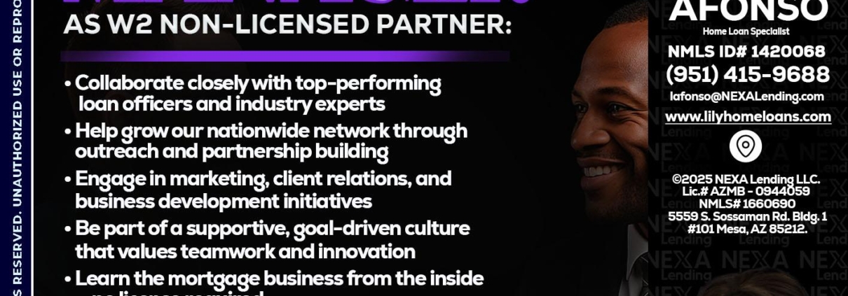 Hi, my name is Liliana Afonso. I’m a Loan Officer with NEXA Mortgage LLC., offering personalized mortgage solutions, fast customized quotes, great rates and service with integrity.