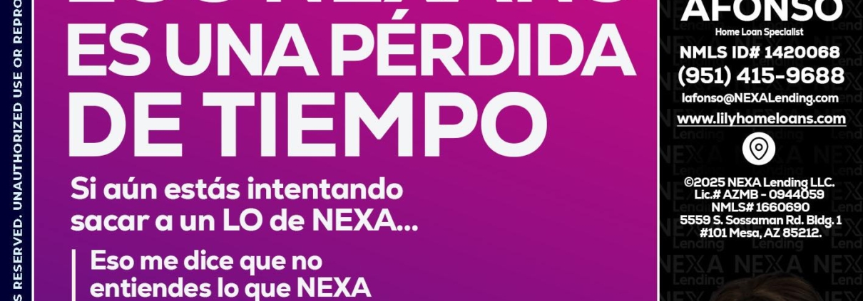Hi, my name is Liliana Afonso. I’m a Loan Officer with NEXA Mortgage LLC., offering personalized mortgage solutions, fast customized quotes, great rates and service with integrity.