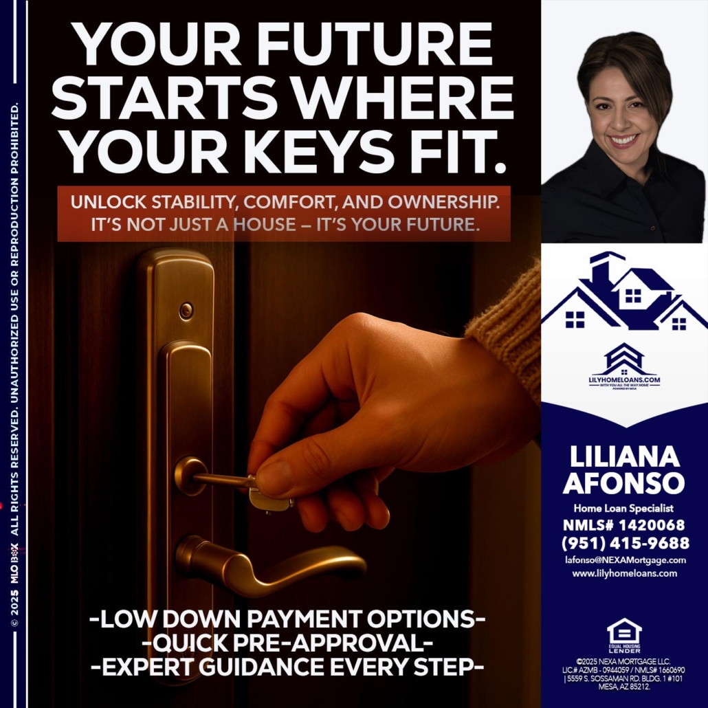 Hi, my name is Liliana Afonso. I’m a Loan Officer with NEXA Mortgage LLC., offering personalized mortgage solutions, fast customized quotes, great rates and service with integrity.